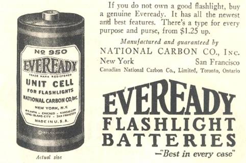 1927 Eveready battery ad
